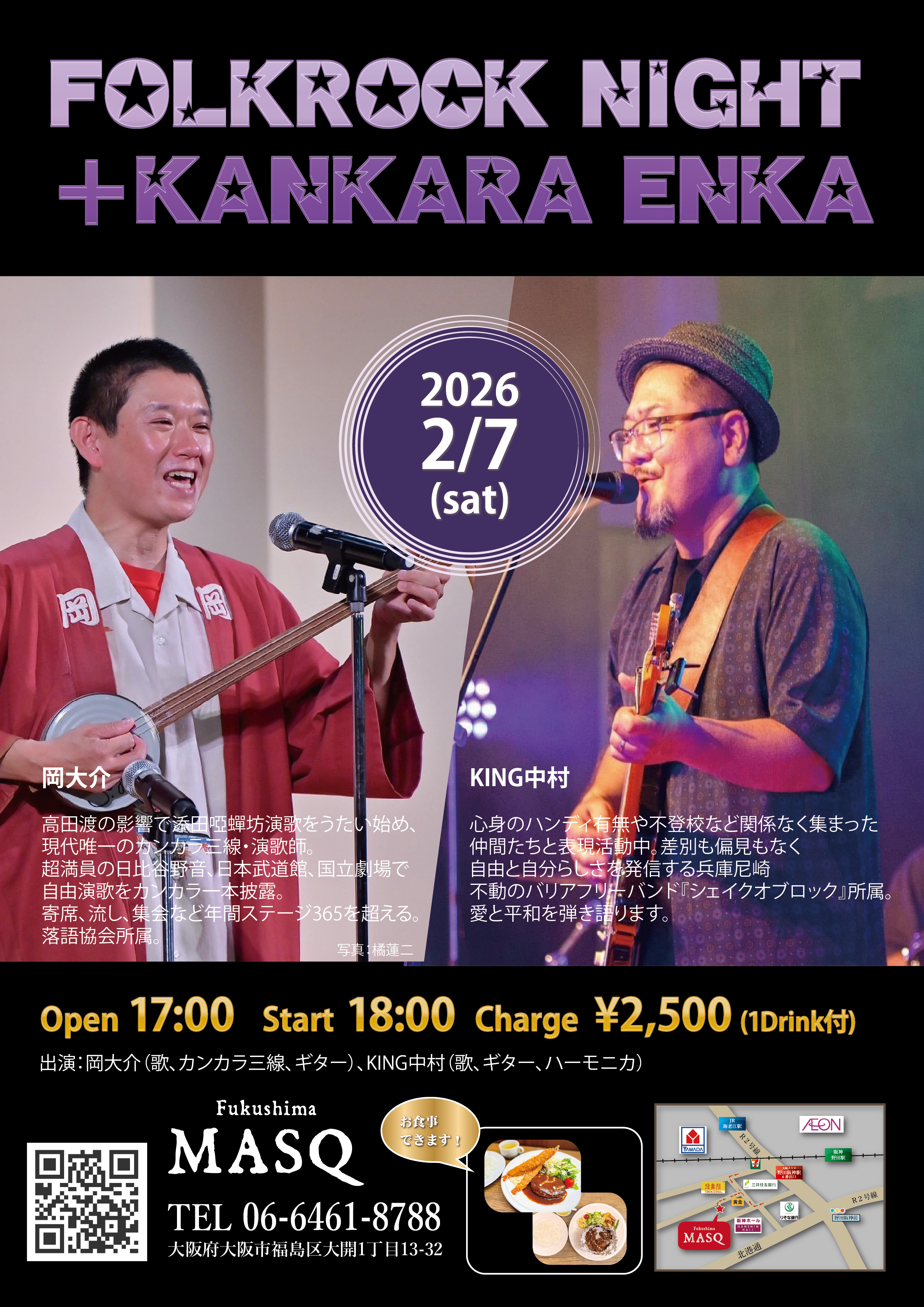 フォークロックナイト+かんから演歌 OPEN 17:00 START 18:00 MC ¥2,500(1Drink別)