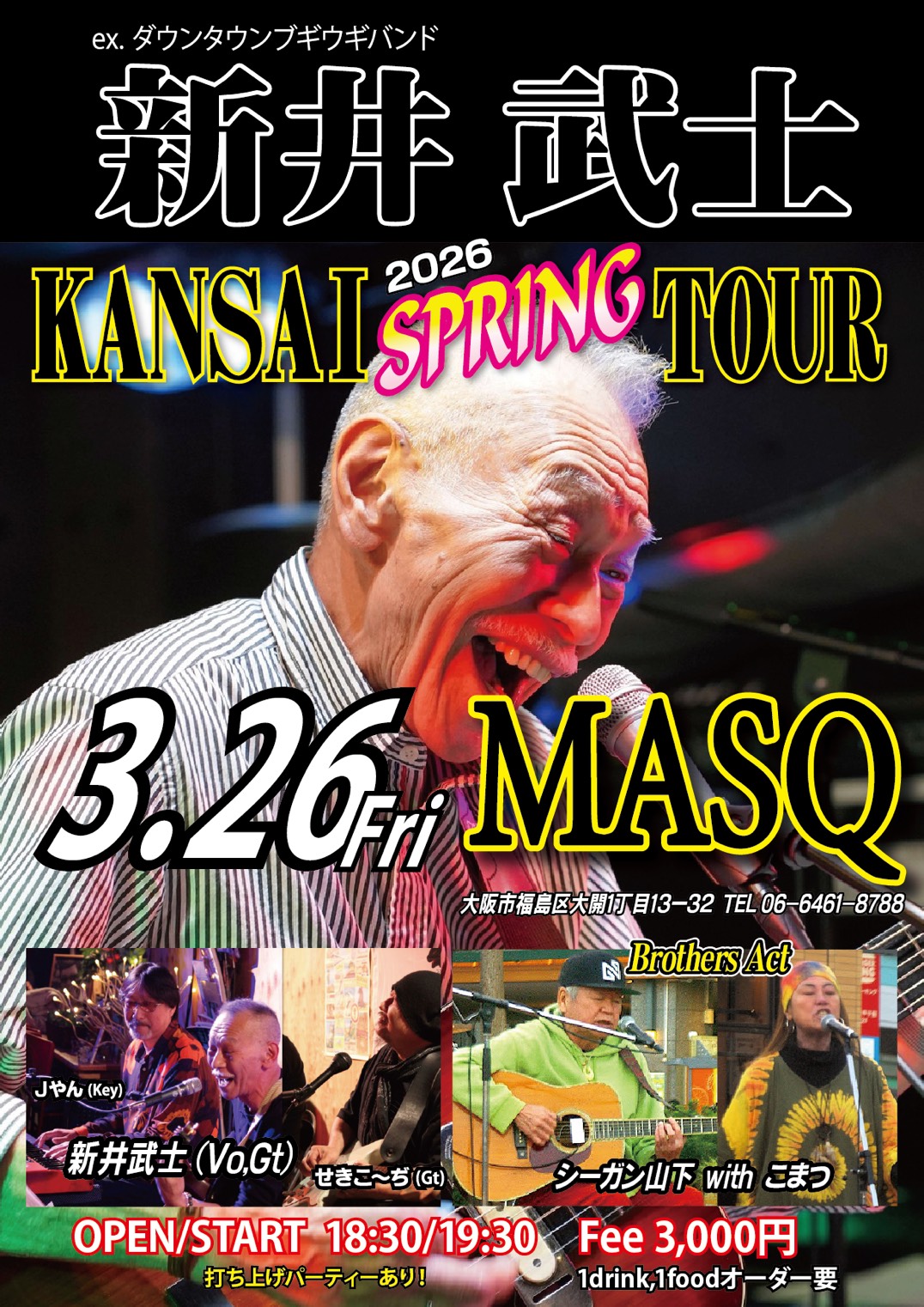 OPEN 18:00 START 19:00 Charge ¥3500 (1Drink別) ご予約はこちら 06-6461-8788 |