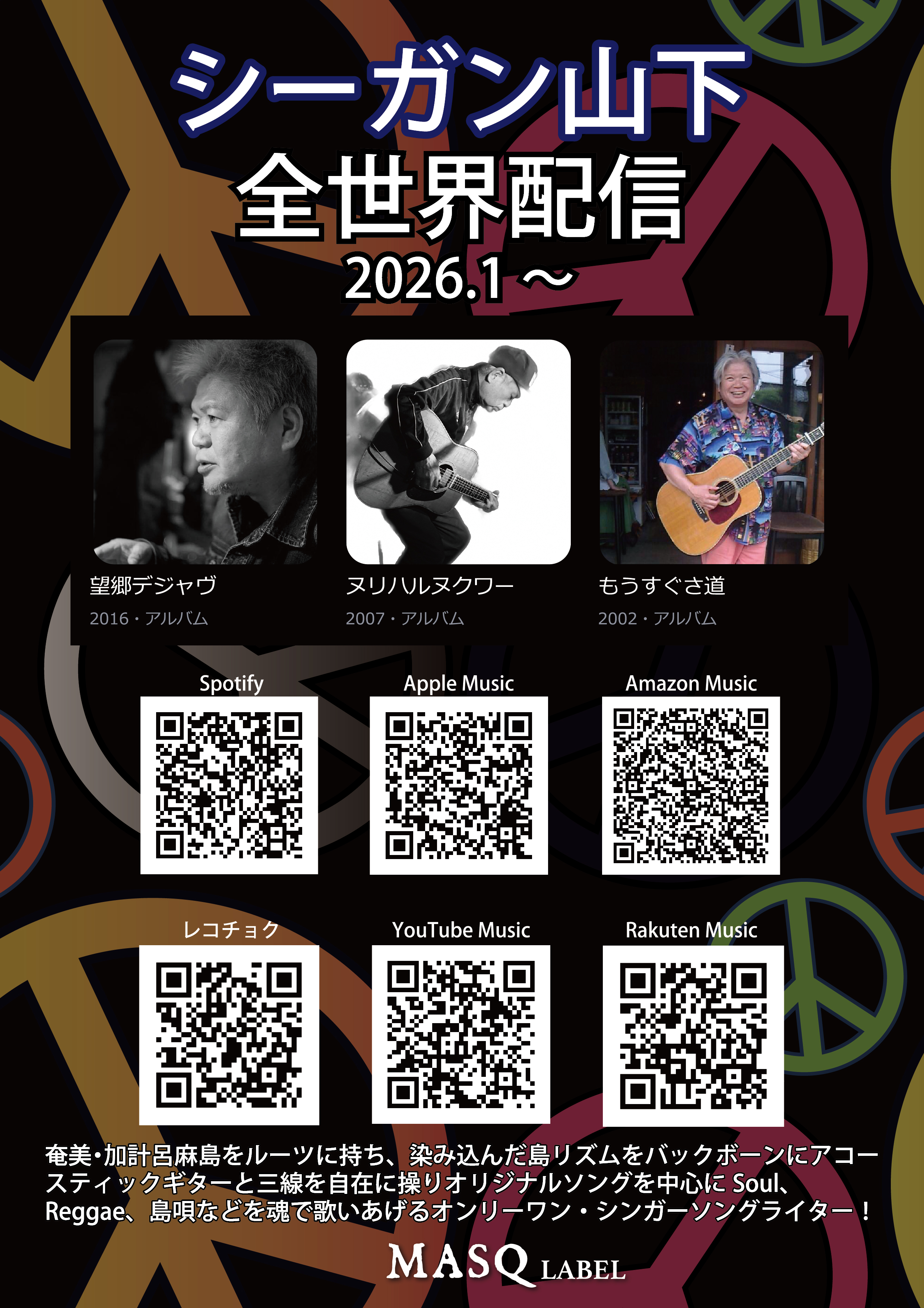 故郷奄美をバッグボーンにした、南国情緒溢れるリズムと心に染み入る ヴォーカルで、